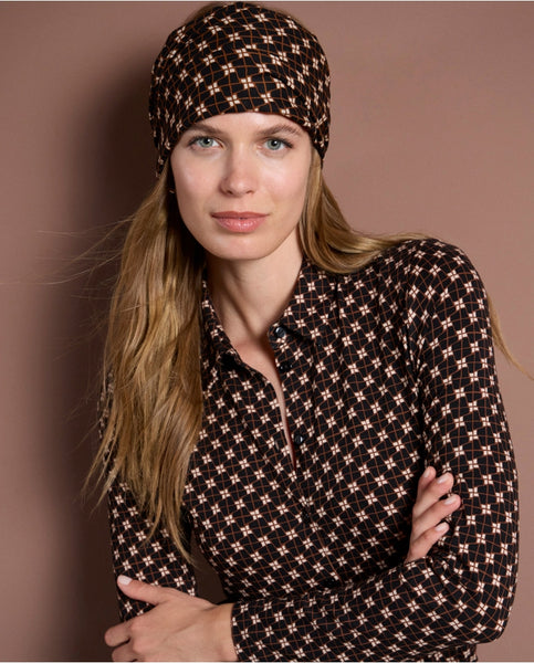 Camisa elástica com estampado retrô, que combina conforto e estilo num só modelo. O tecido macio e o corte ajustado valorizam a silhueta, enquanto o padrão dá um toque moderno e original ao look.