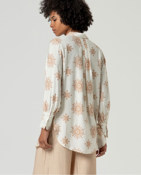 Camisa de manga longa com gola e fechamento de botão na frente. Corte reto e barra levemente arredondada. Projetado em Barcelona.