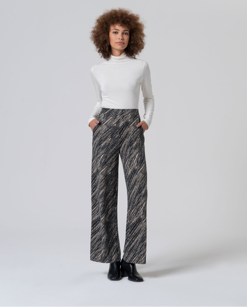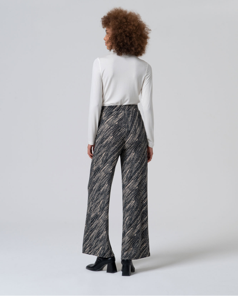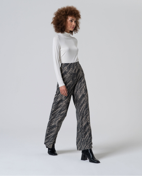 Calças elásticas em poliéster reciclado, na cor preta.Confortáveis, elegantes e sustentáveis — ideais para um look moderno com consciência ambiental.