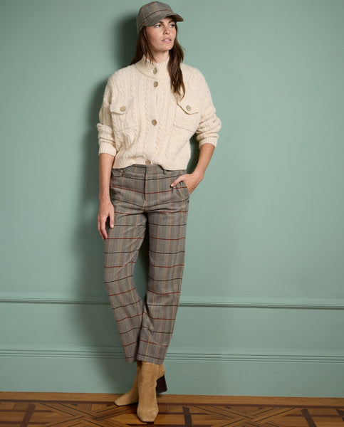 Calça reta com padrão xadrez, clássica e cheia de estilo. O corte elegante e o tecido confortável garantem um visual moderno e versátil — perfeita para combinar com camisas, malhas ou blazers.