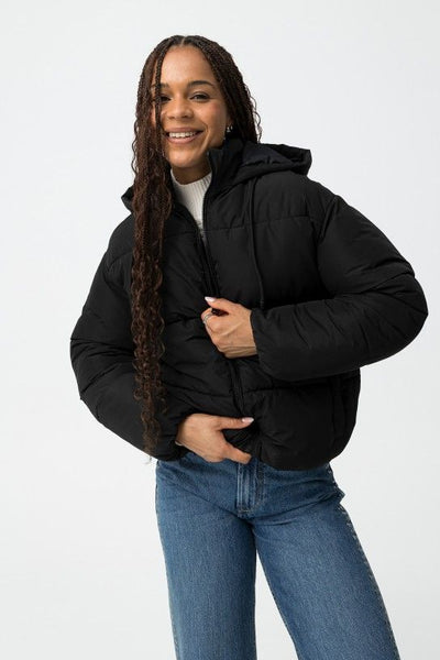 Casaco relaxed fit acolchoado, com dois bolsos frontais, fecho de correr, capuz ajustável por cordão, manga longa e terminações elásticas.100% POLYESTER