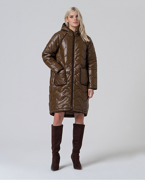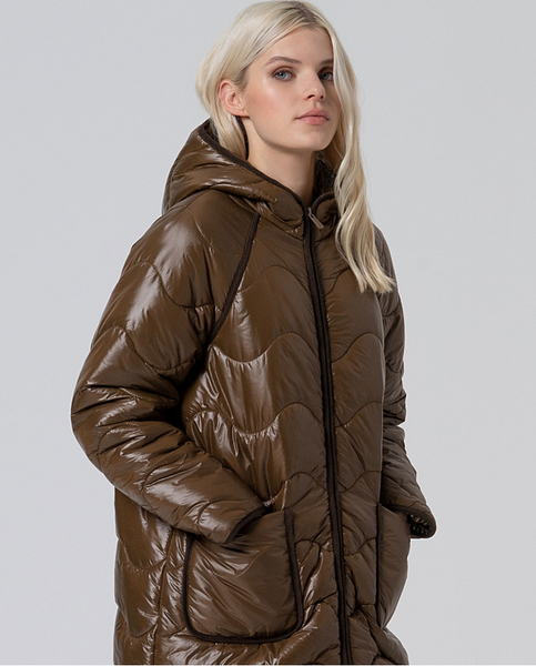 Casaco acolchoado com capuz fixo e design envolvente, fabricado em nylon 100% impermeável. Leve como uma pena, mas quente e funcional. Inclui pormenores em bombazina nos bolsos e nas costuras para dar textura e contraste. Ideal para dias frios e húmidos sem comprometer o estilo e o conforto.
