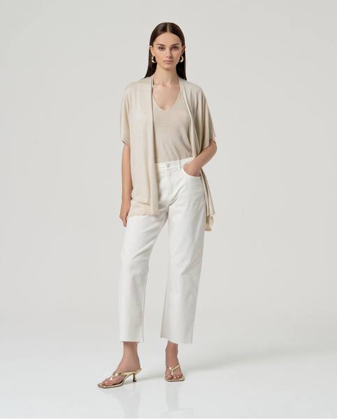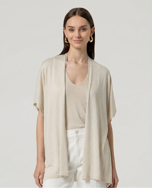 Poncho aberto com decote em V e mangas curtas largas. Design slip-on com silhueta reta e queda solta. Feito de tecido de tricô fino com acabamento brilhante. Projetado em Barcelona.