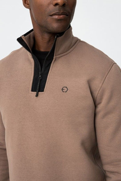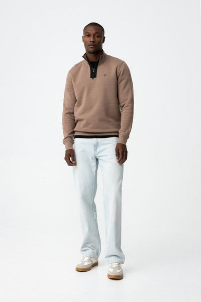 Sweatshirt regular fit de mescla de algodão, com contraste na gola, fecho de correr e detalhe em alto relevo. Gola alta, manga longa e interior cardado.