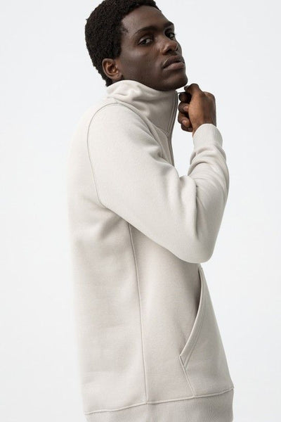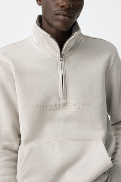 Sweatshirt regular fit, gola alta com fecho de correr. Punhos e bainha em rib e bolso canguru. Estampado frontal com relevo.