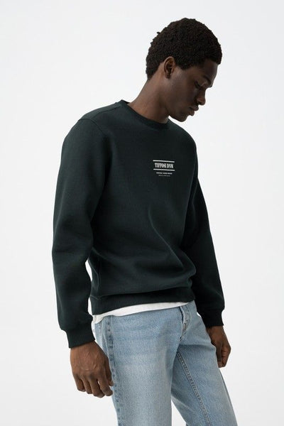 Sweatshirt de manga comprida com gola redonda e punhos em rib. Maioritariamente em algodão. Regular fit.