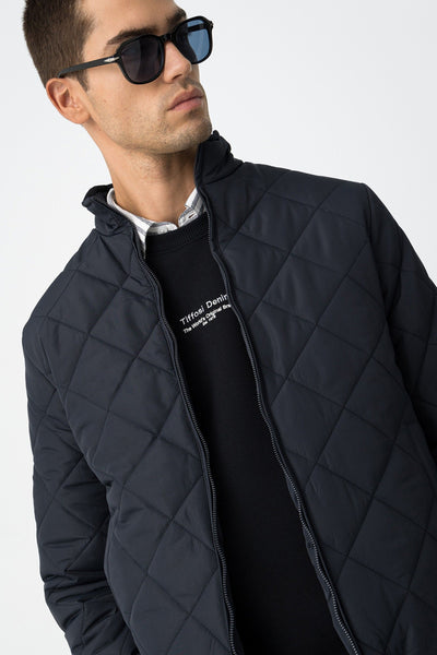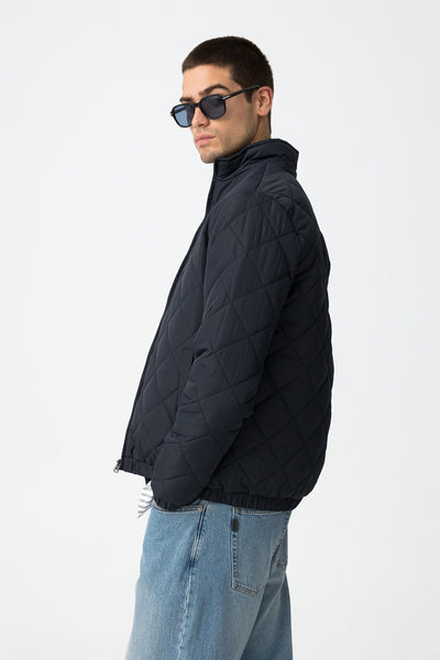 Casaco acolchoado regular fit, com dois bolsos frontais e fecho de correr. Gola alta, manga longa, terminações elásticas e bolso interno.