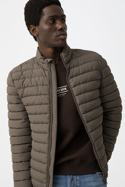 Casaco regular, acolchoado, com dois bolsos frontais e fecho de correr. Manga longa e acabamento interno de elástico na bainha e nos pulsos.100% POLYESTER