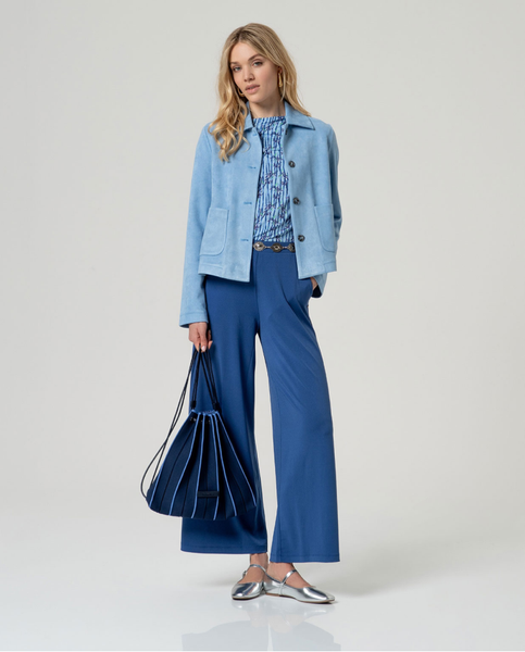 Calças de cintura alta com perna larga e reta. Cós elástico simples e bolsos laterais inseridos na costura. Feito de tecido fluido de uma mistura de poliéster reciclado e elastano com um caicimento leve. Projetado em Barcelona.